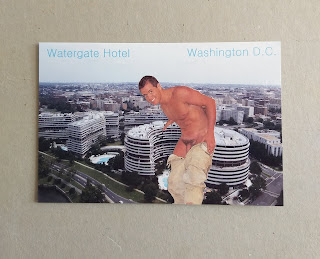 Naked party 2 2019. Collage. Intervention on a 70’s postcard, The Waltergate Hotel and erotic magazines, 8,6 x 13,9 cm. Private collection. California, USA #joaogalrao #art #collage #eroticart #instagay #gayart #dailyart #artnews #poolparty #nakedparty